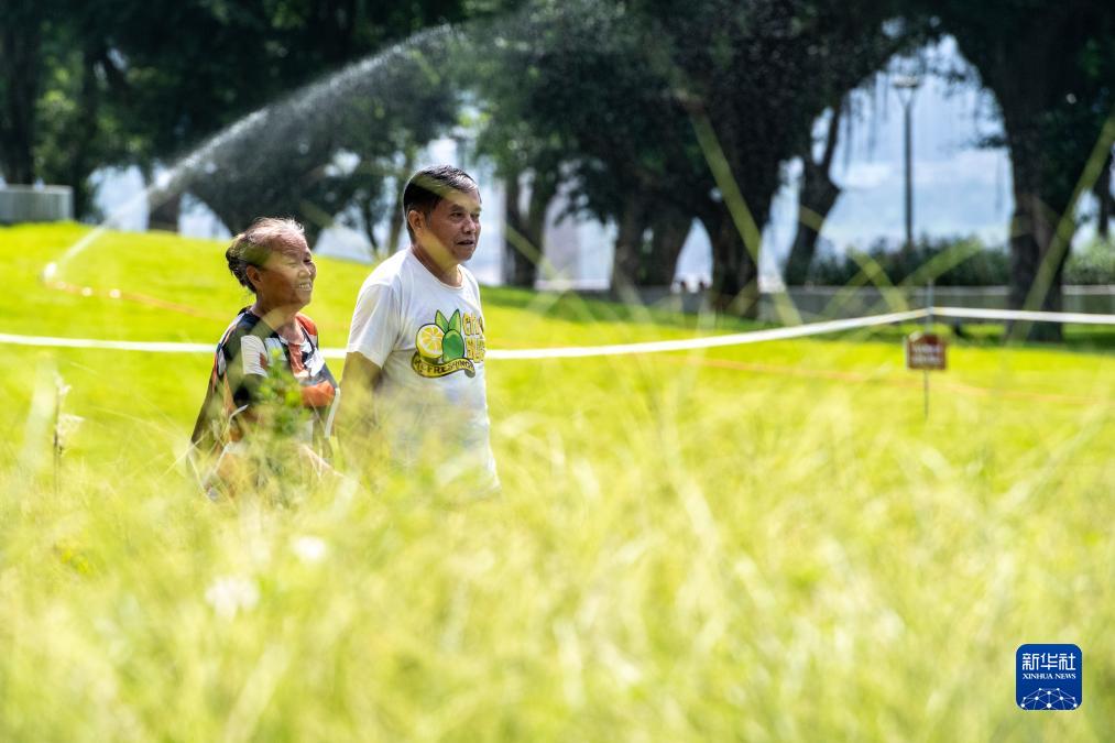 8月6日,在位于重慶長(cháng)江岸邊的珊瑚公園,市民在散步。