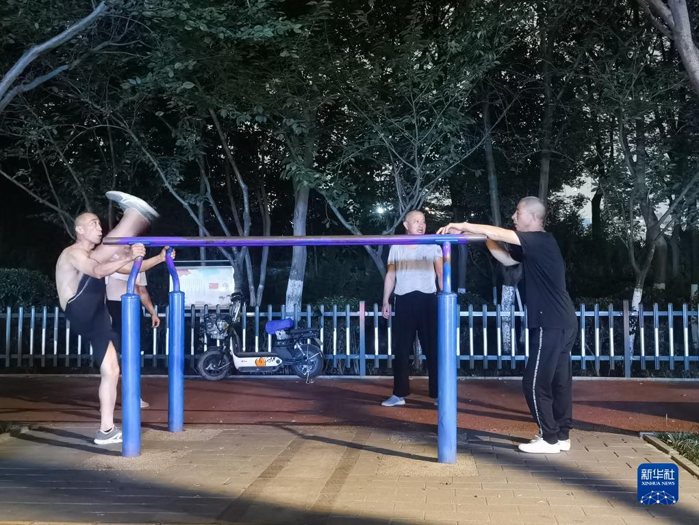 8月6日晚,市民在位于西安市未央區的一處公園內鍛煉(手機照片)。