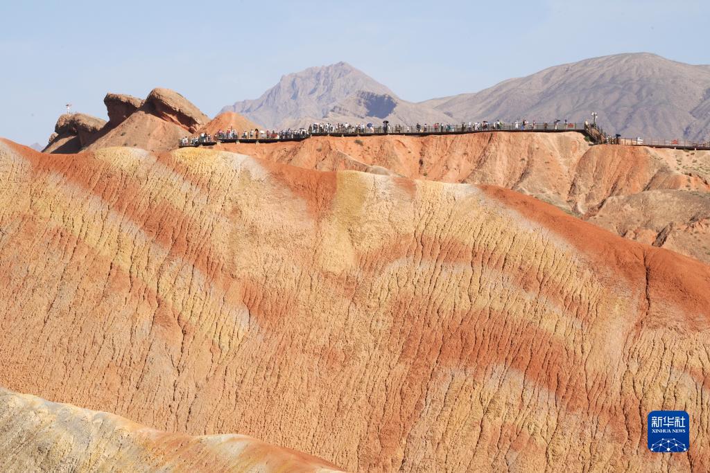 位于甘肅省張掖市境內的張掖七彩丹霞景區屬張掖國家地質(zhì)公園,是罕見(jiàn)的丹霞地貌與彩色丘陵景觀(guān)復合區。進(jìn)入8月以來(lái),七彩丹霞景區日均游客數量突破3.5萬(wàn)人次。