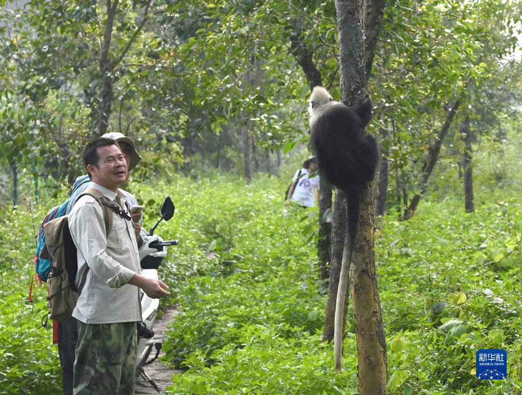 梁志章在近距離觀(guān)察白頭葉猴活動(dòng)(8月5日攝)。
