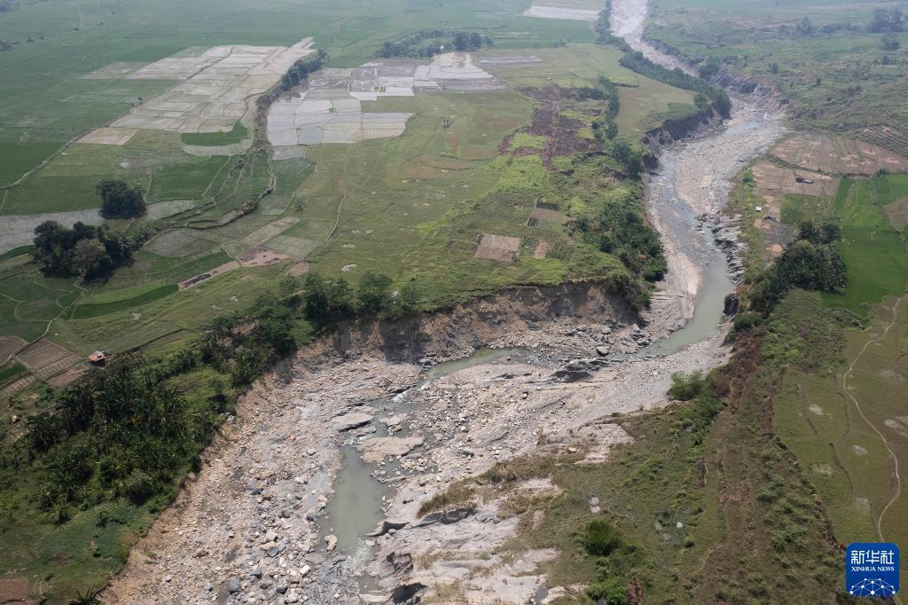 8月7日,在印度尼西亞西爪哇省的茂物,鄉間一條河流的水量大為減少幾近干涸(無(wú)人機照片)。