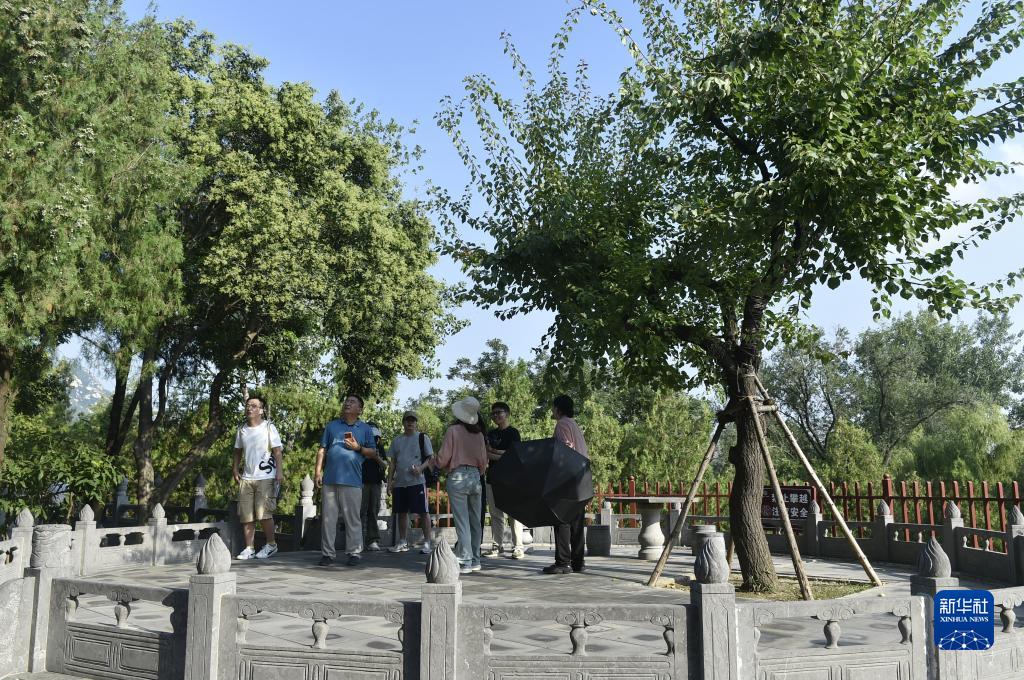 8月7日,游人在嵩陽(yáng)書(shū)院內的“杏壇”參觀(guān)。