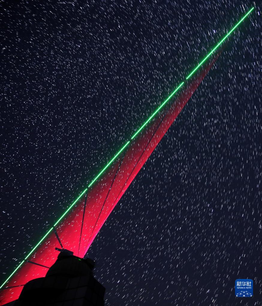 2016年11月28日,“墨子號”量子科學(xué)實(shí)驗衛星過(guò)境,科研人員在河北興隆觀(guān)測站做實(shí)驗(合成照片)。