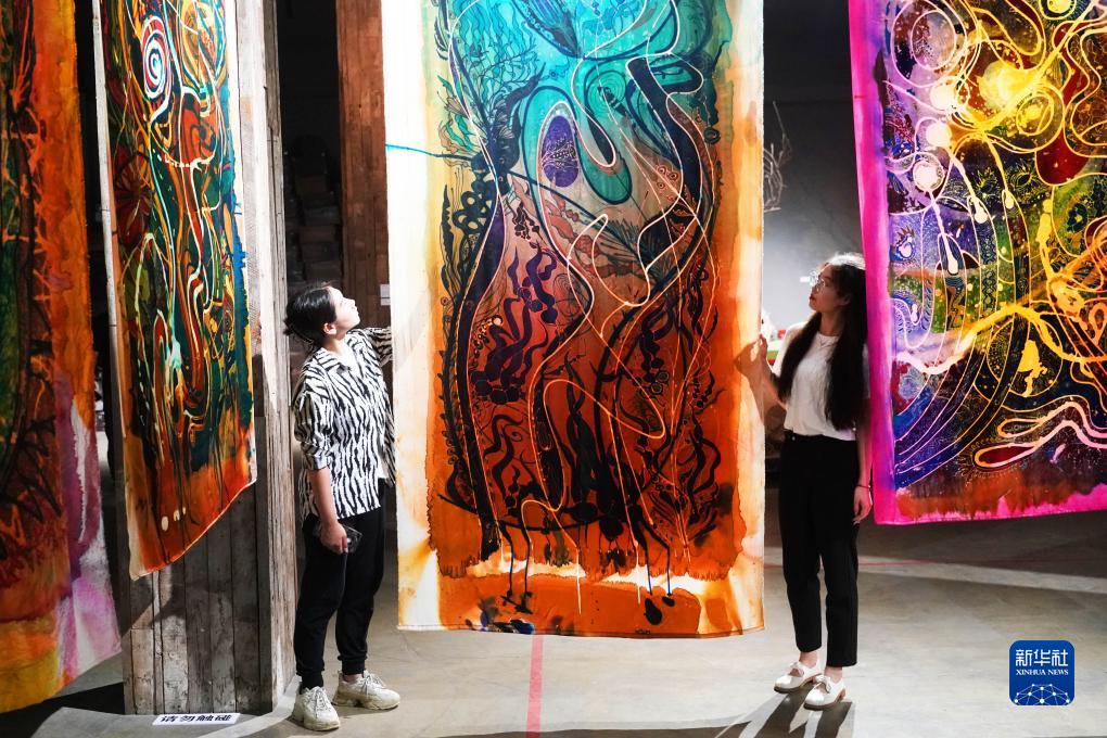 8月8日,在位于北京市平谷區的萬(wàn)圣谷美術(shù)館,觀(guān)眾參觀(guān)藝術(shù)作品。