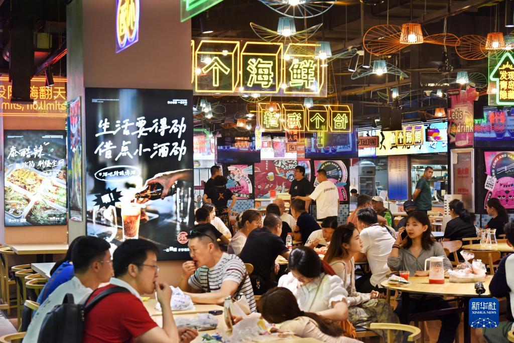 8月7日,顧客在青島市市南區浮山所市集就餐區用餐。