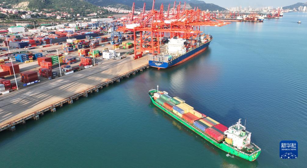8月8日,在江蘇連云港港,進(jìn)港貨輪緩緩??看a頭(無(wú)人機照片)。