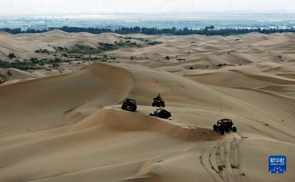 越野車(chē)在庫布其沙漠中穿梭(8月5日攝)。