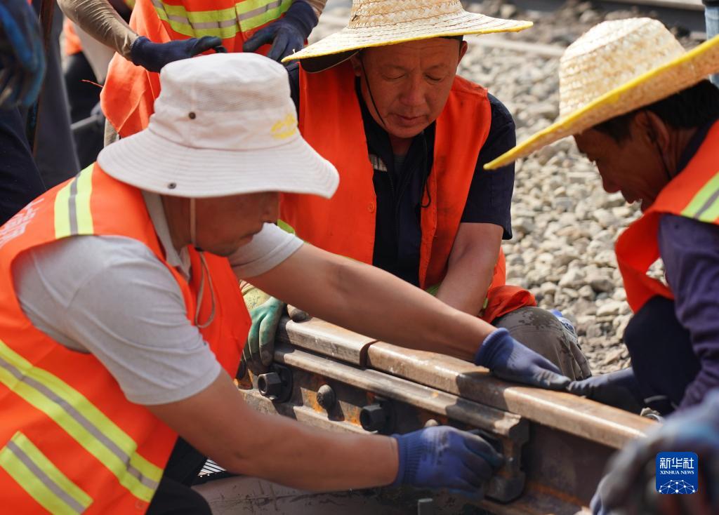 8月8日,工人們在抓緊搶修豐沙線(xiàn),確保通車(chē)順利。