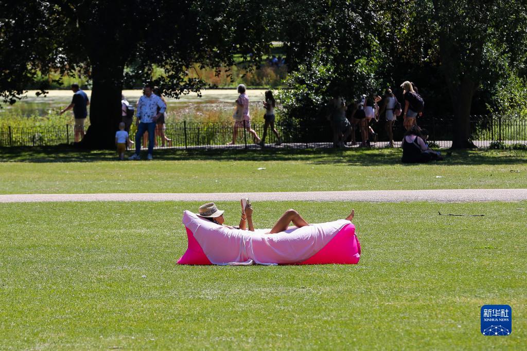 7月7日,一名女子在英國倫敦圣詹姆斯公園沐浴陽(yáng)光。