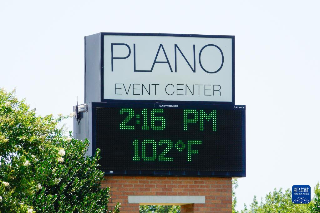 7月18日,美國得克薩斯州達拉斯一個(gè)溫度指示牌顯示氣溫達到102華氏度(約38.9攝氏度)。