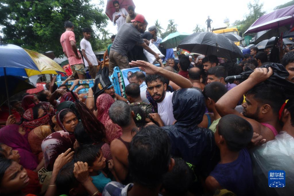 8月8日,人們在孟加拉國吉大港領(lǐng)取救援物資。