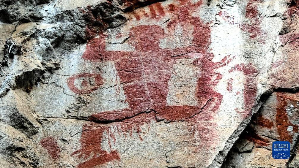這是廣西崇左市寧明縣的花山巖畫(huà),畫(huà)中人的腳趾清晰可見(jiàn)(8月8日攝)。