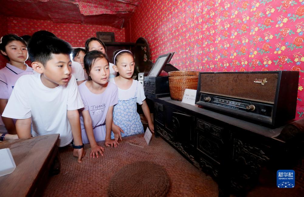 8月9日,山東省青島市即墨區龍山街道的小學(xué)生在前東葛村村史館參觀(guān)老式家具和物件。