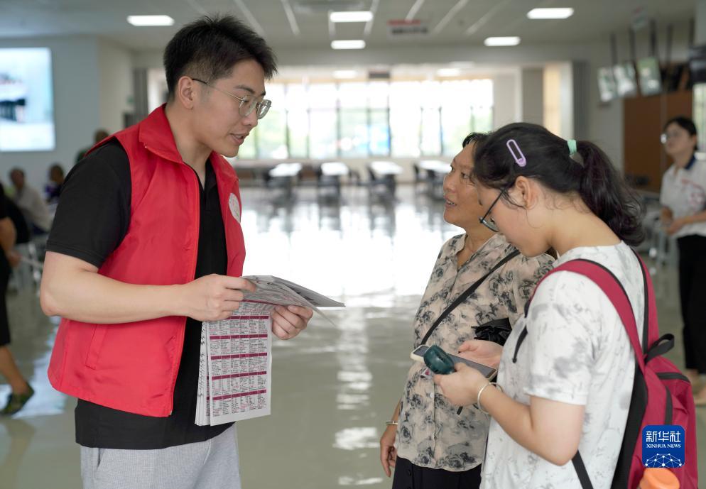 8月9日,浙江省金華市婺城區零工服務(wù)中心,一名零工引導員(左)向求職者介紹情況。