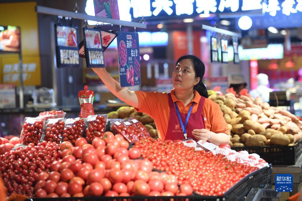8月10日,涿州市惠友超市鉆石廣場(chǎng)店工作人員在調整標價(jià)牌。