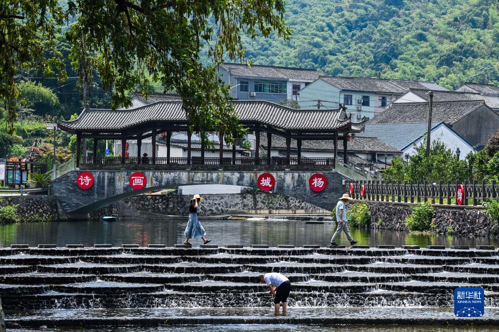 8月10日,游客在寧波市鄞州區城楊村的溪流玩耍。該村是寧波“最美精品線(xiàn)路”的重要節點(diǎn)。2020年城楊村積極推動(dòng)特色鄉村旅游產(chǎn)業(yè)發(fā)展,集體經(jīng)濟年收入從不足10萬(wàn)元發(fā)展到如今年收入已超50萬(wàn)元,每年接待游客超15萬(wàn)人次。
