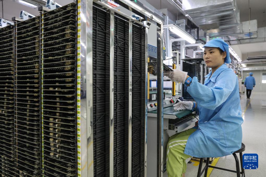 質(zhì)檢員在佛山照明高明生產(chǎn)基地的車(chē)燈生產(chǎn)車(chē)間檢測產(chǎn)品(8月9日攝)。