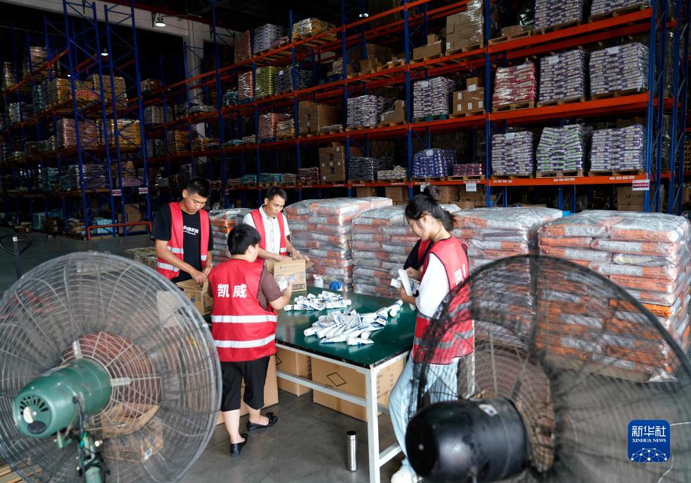 8月10日,浙江省金華市金義綜合保稅區一倉庫內,工作人員在發(fā)貨前核驗商品。