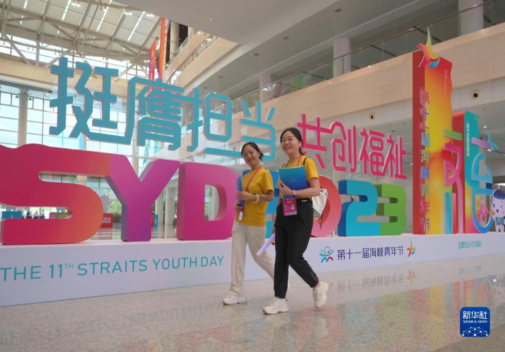 8月10日,青年代表從第十一屆海峽青年節宣傳欄前走過(guò)。