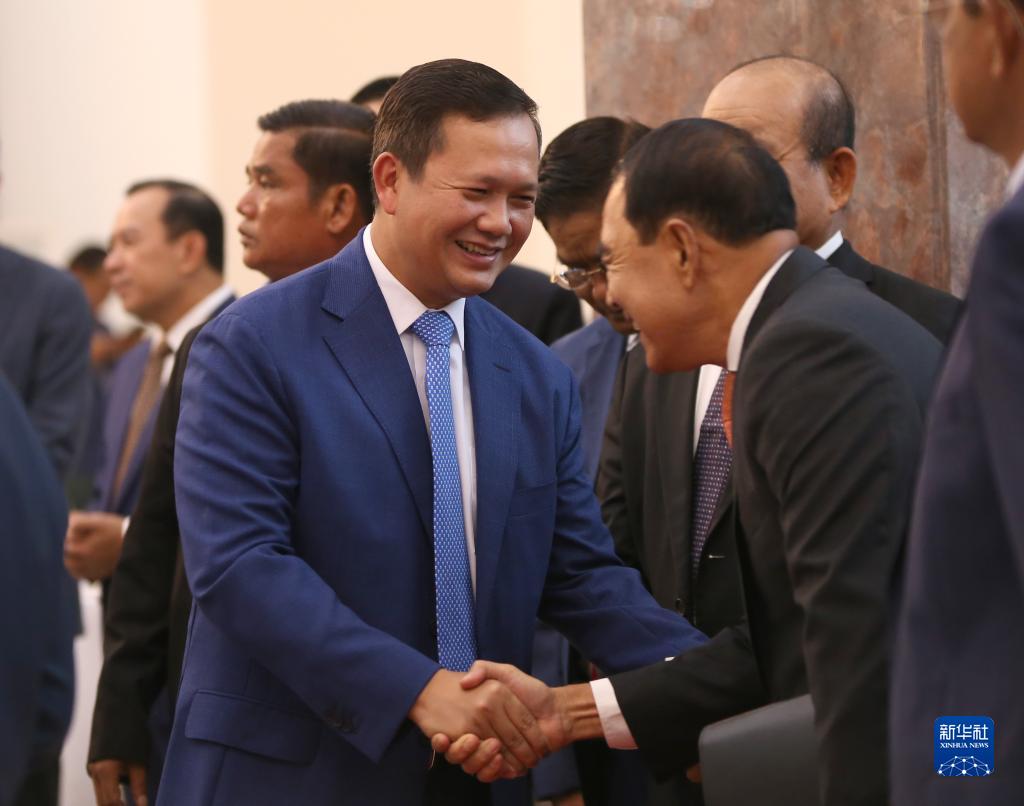 8月10日,柬埔寨候任首相洪瑪奈(左)在柬埔寨首都金邊參加政務(wù)活動(dòng)。
