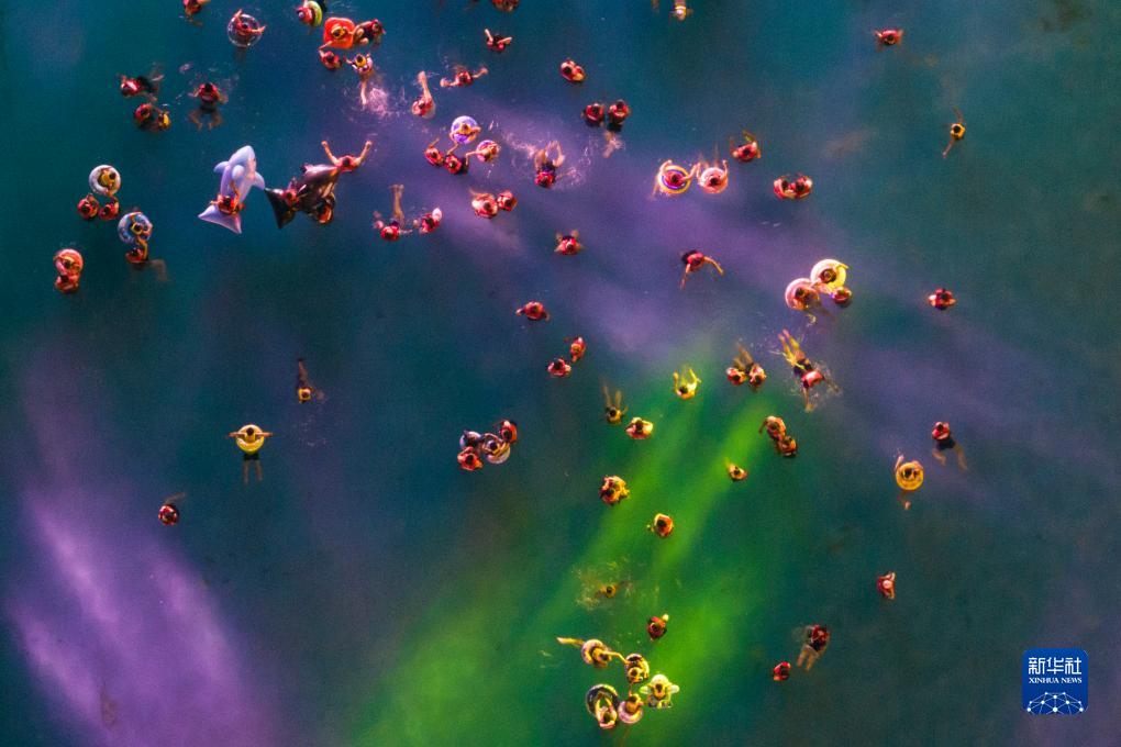 游客在西安市浐灞生態(tài)區一家水上樂(lè )園內游玩(8月10日攝,無(wú)人機照片)。