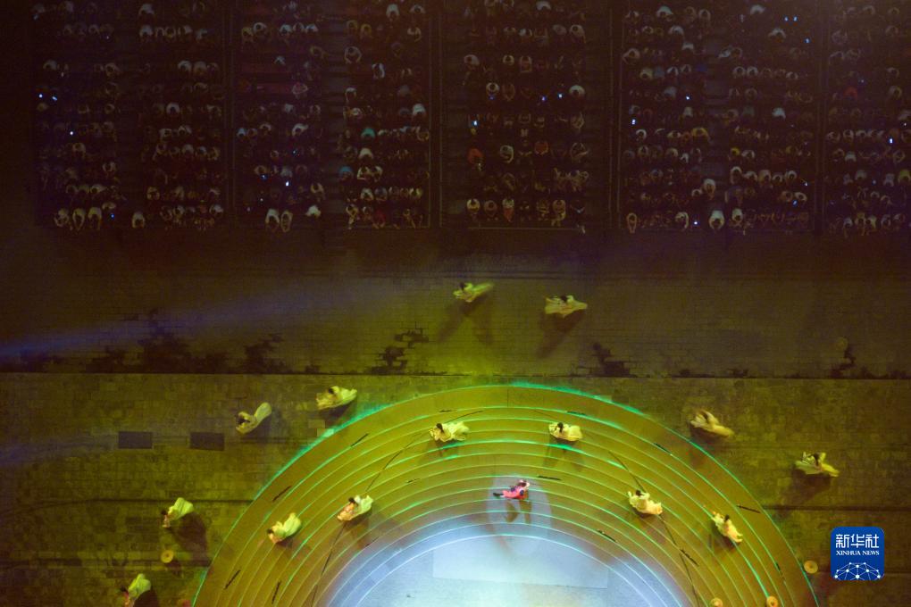 游客在西安城墻南門(mén)甕城內觀(guān)看文藝表演(8月10日攝,無(wú)人機照片)。