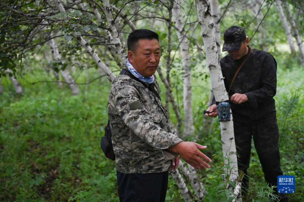 8月4日,白巴嘎那(左)指導同事架設紅外相機。