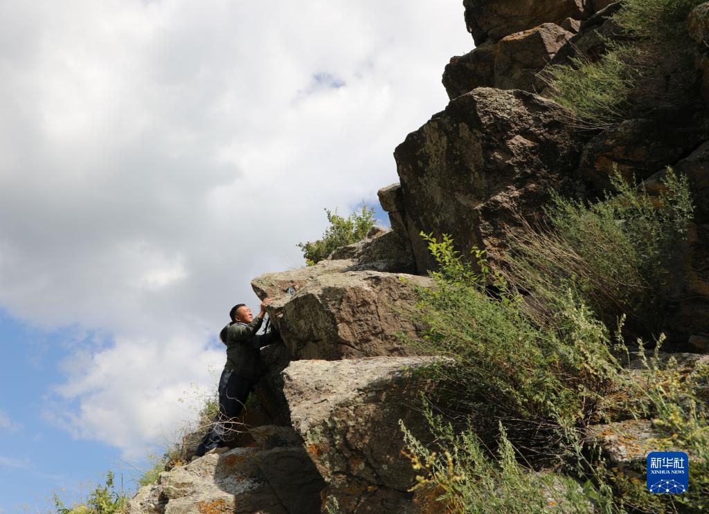 8月10日,白巴嘎那爬上一處石山,架設紅外相機。