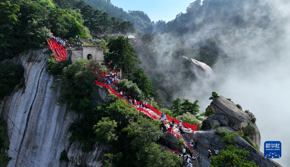 進(jìn)入暑期旅游旺季,位于陜西省渭南市的西岳華山迎來(lái)五湖四海的游客。據了解,自7月以來(lái),華山景區日均游客接待量已超過(guò)2萬(wàn)人次。