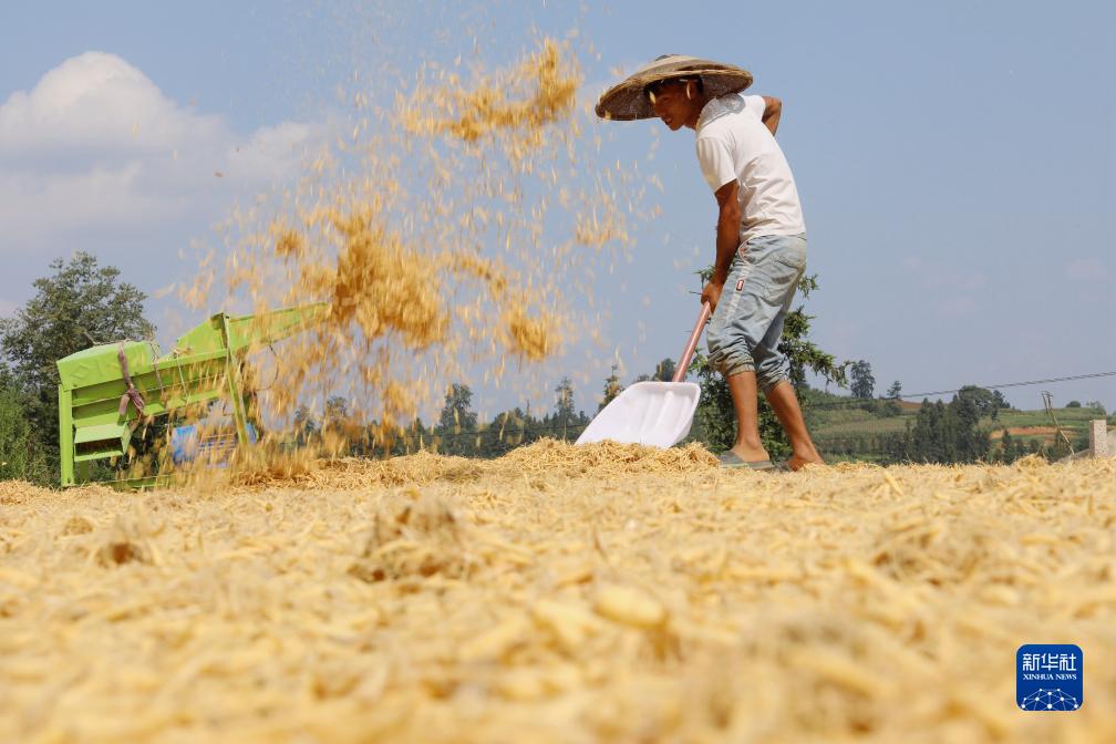 立秋以來(lái),貴州、湖南等地農民搶抓晴好天氣,晾曬收獲的作物。