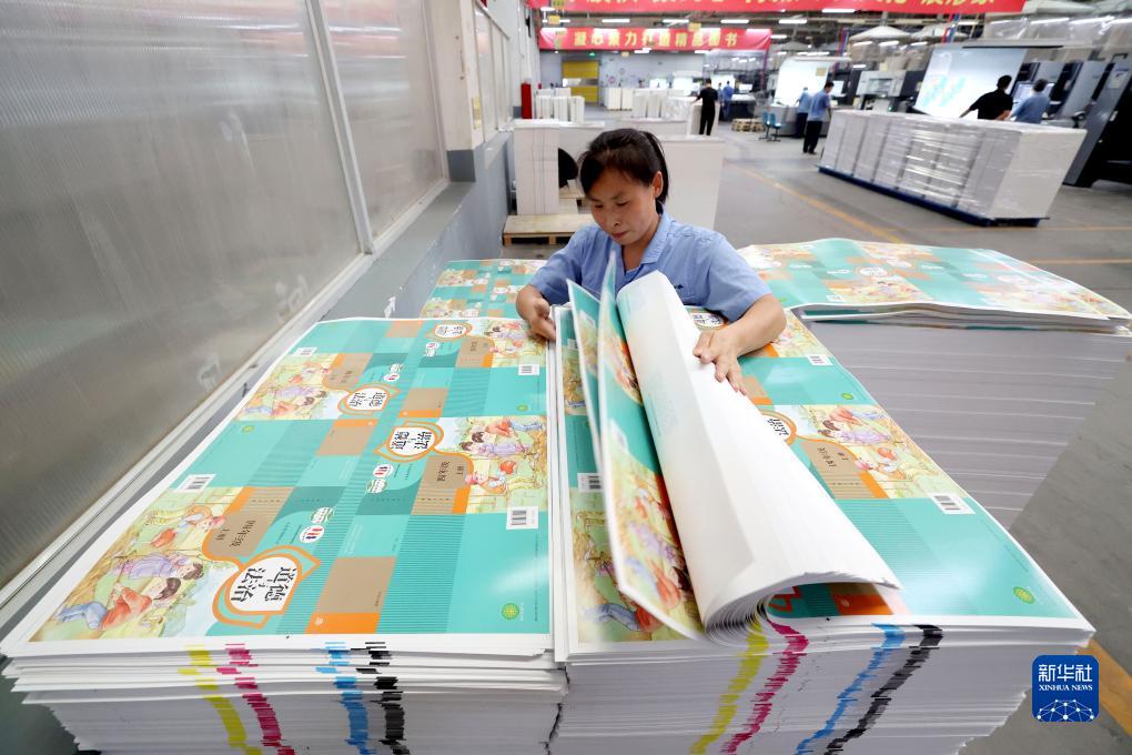 8月11日,在位于石家莊的河北新華第二印刷有限責任公司,工人對教材印刷品進(jìn)行檢查。