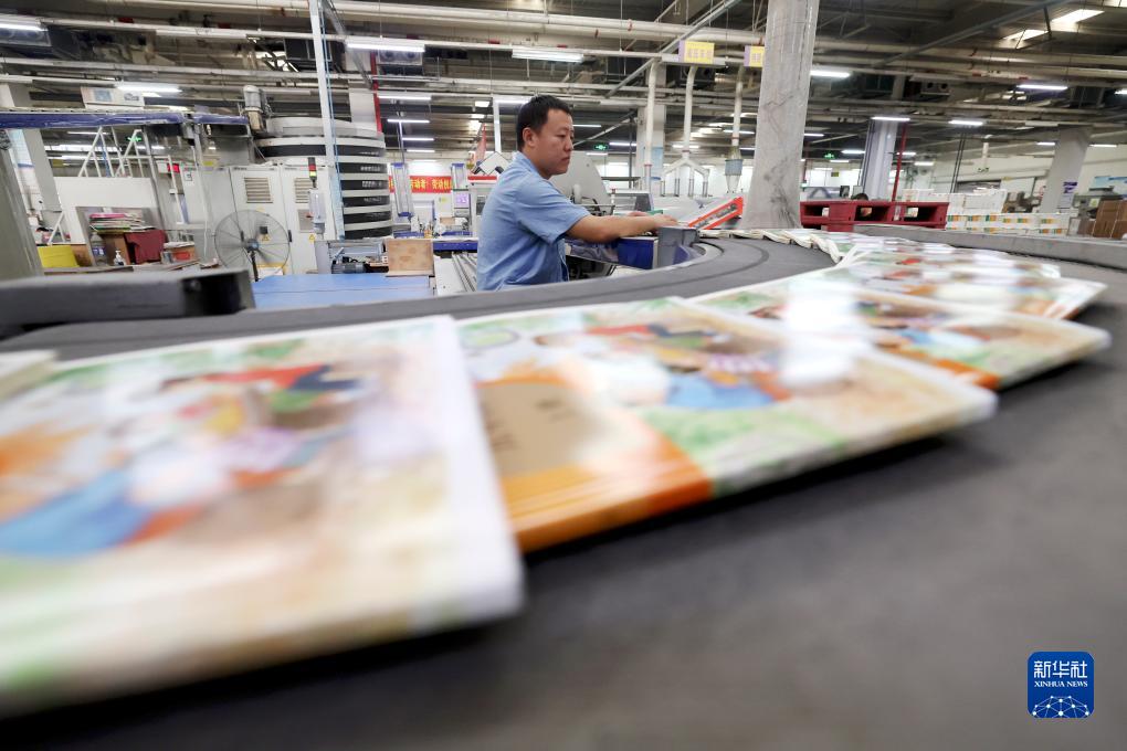 8月11日,在位于石家莊的河北新華第二印刷有限責任公司,工人在教材印刷生產(chǎn)線(xiàn)工作。