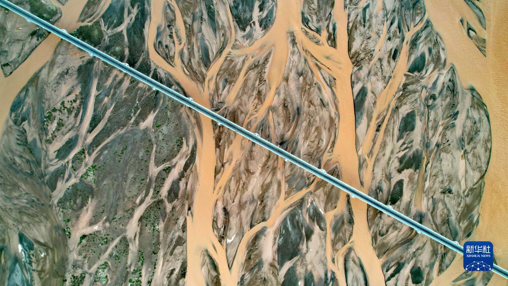 青藏鐵路跨過(guò)沱沱河辮狀河道(7月26日攝,無(wú)人機照片)。