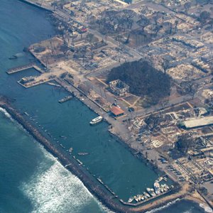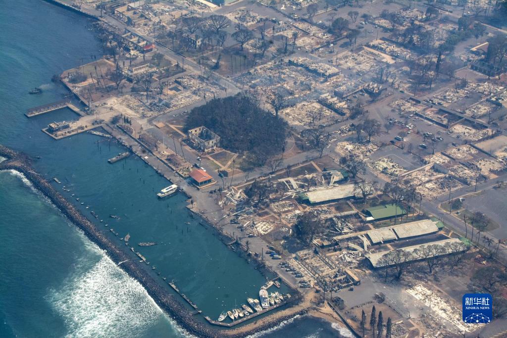 美國夏威夷州毛伊縣8月10日公布的照片顯示野火造成嚴重破壞。
