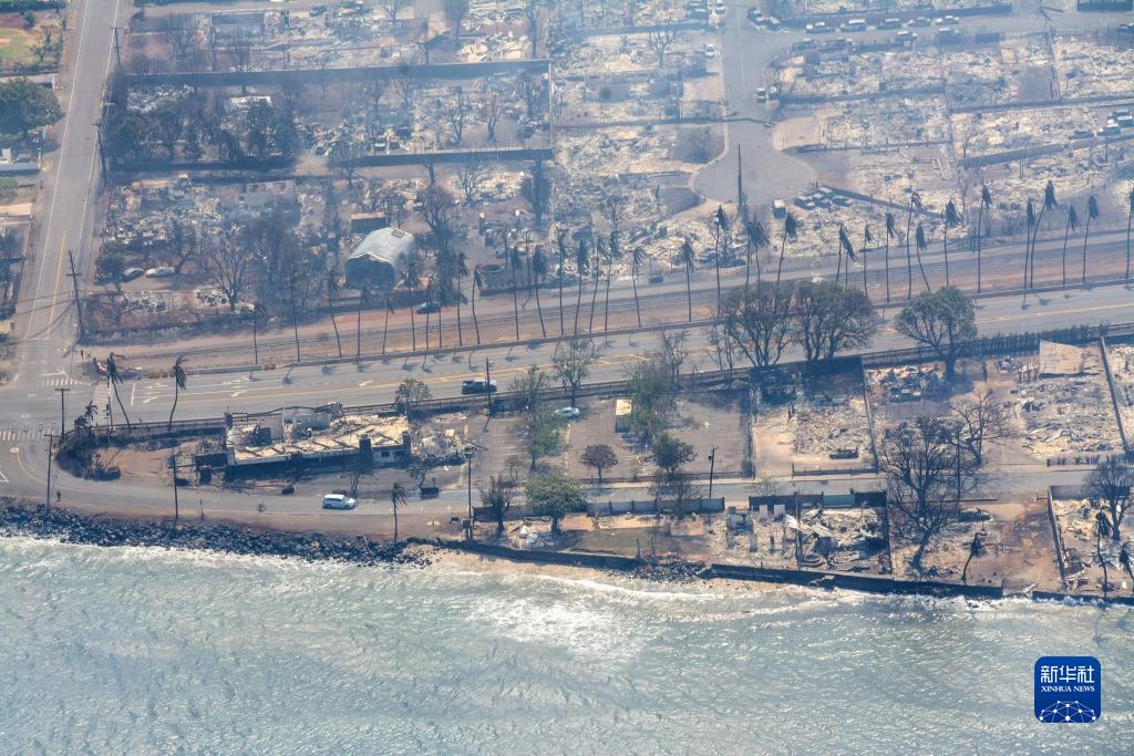 美國夏威夷州毛伊縣8月10日公布的照片顯示野火造成嚴重破壞。新華社發(fā)