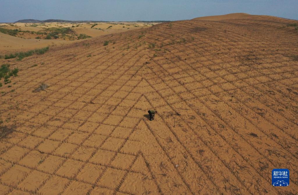 為進(jìn)一步加強荒漠化綜合防治,內蒙古鄂爾多斯市達拉特旗組織干部群眾、治沙工人深入庫布其沙漠栽設沙障,防風(fēng)固沙。從今年四月份至今,達拉特旗已累計栽植沙障一萬(wàn)多畝。