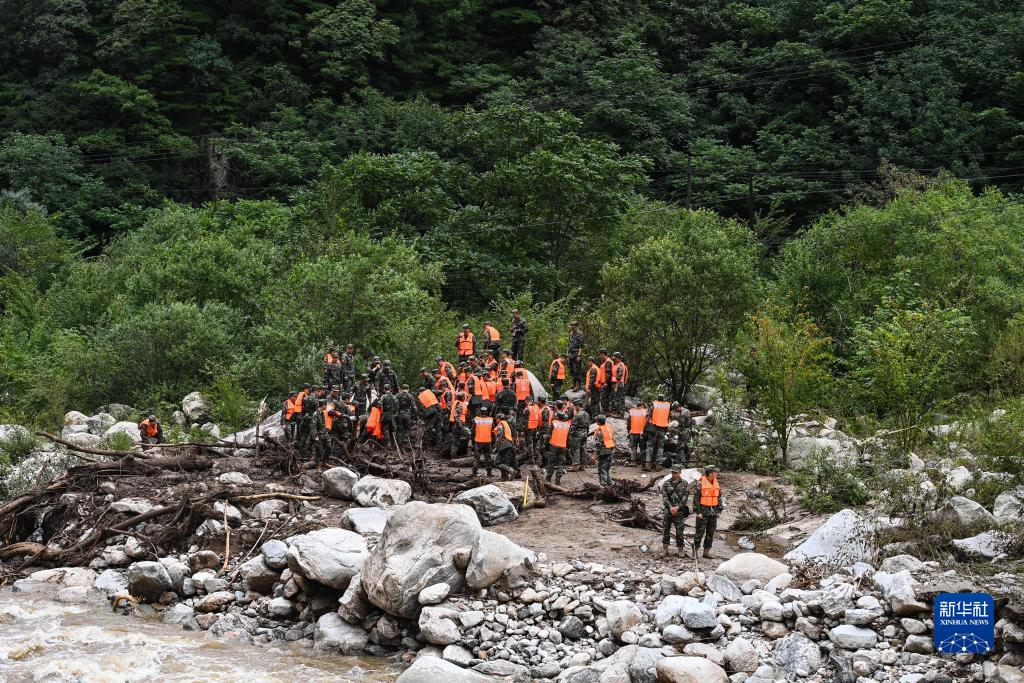 8月12日,救援人員在沿河搜救。