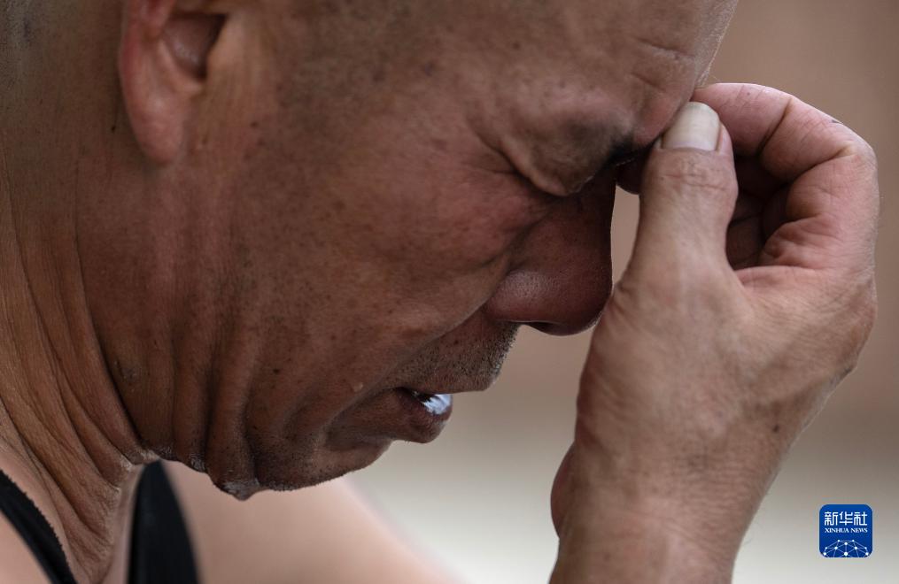 8月10日,鄧一強在巡線(xiàn)間隙休息。新華社記者 費茂華 攝