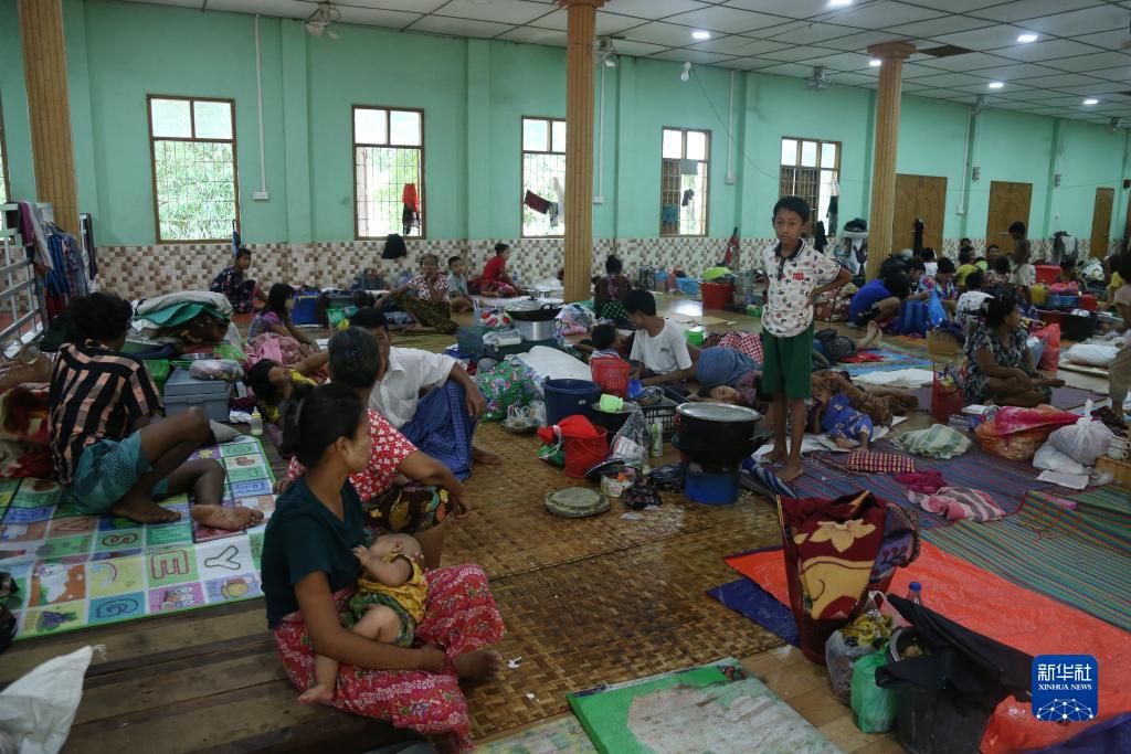 8月12日,人們在緬甸勃固省一處洪災安置點(diǎn)休息。新華社發(fā)(苗覺(jué)梭攝)