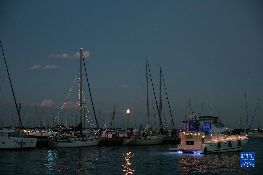 這是8月12日在芝加哥拍攝的“威尼斯游船秀”現場(chǎng)。