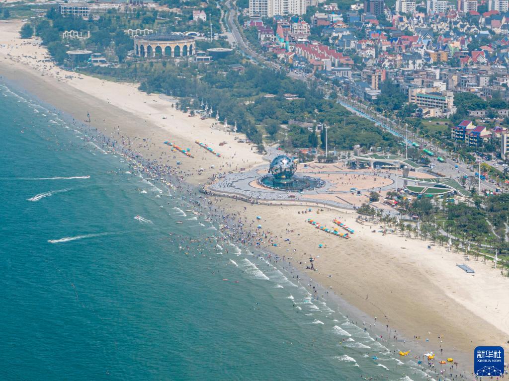 8月13日,游客在廣西北海銀灘游玩(無(wú)人機照片)。