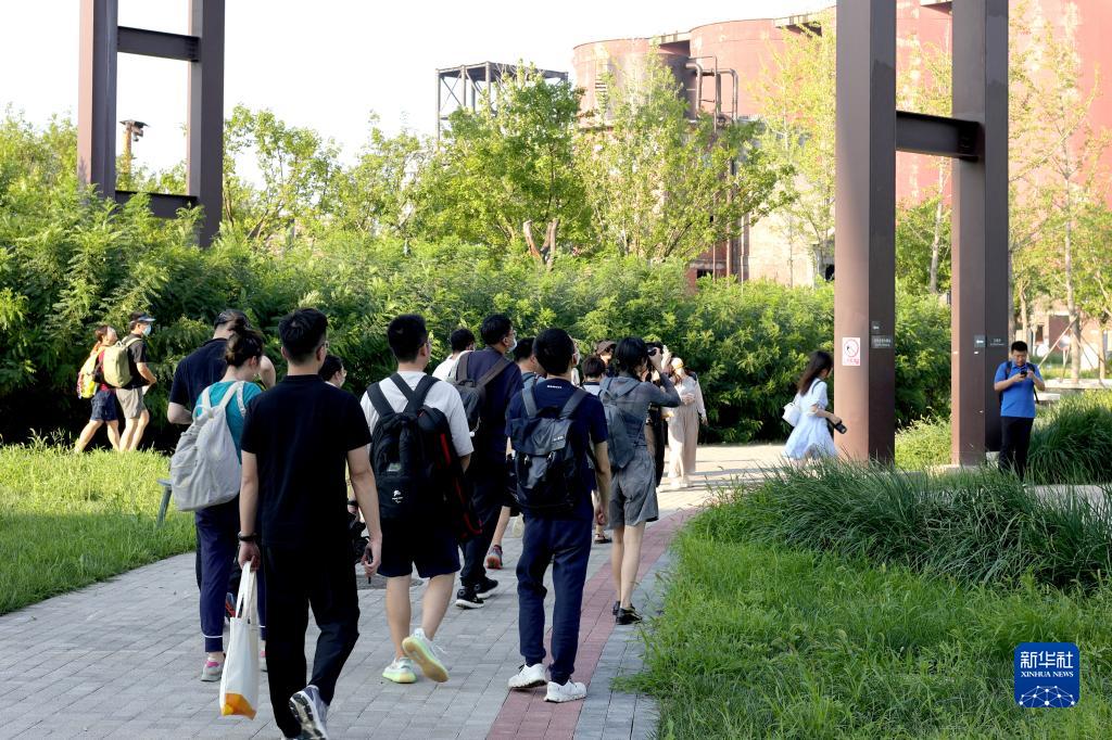 8月13日,媒體記者在首鋼園區參加場(chǎng)館探營(yíng)活動(dòng)。