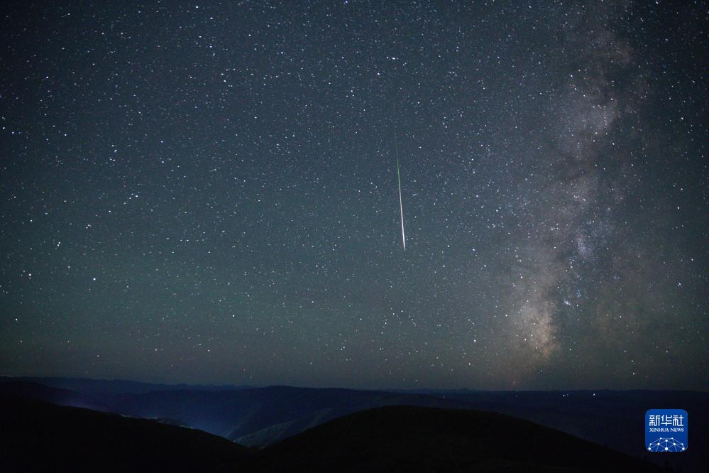 在四川省紅原縣安曲鎮,英仙座流星雨劃過(guò)夜空(8月13日攝)。