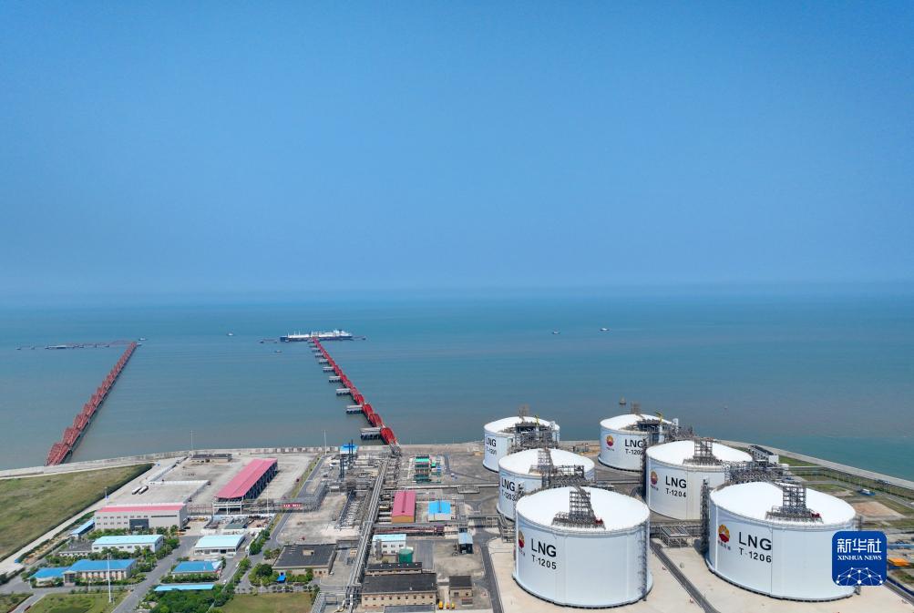 8月13日拍攝的位于江蘇省如東縣洋口港的江蘇LNG接收站儲罐區(無(wú)人機照片)。