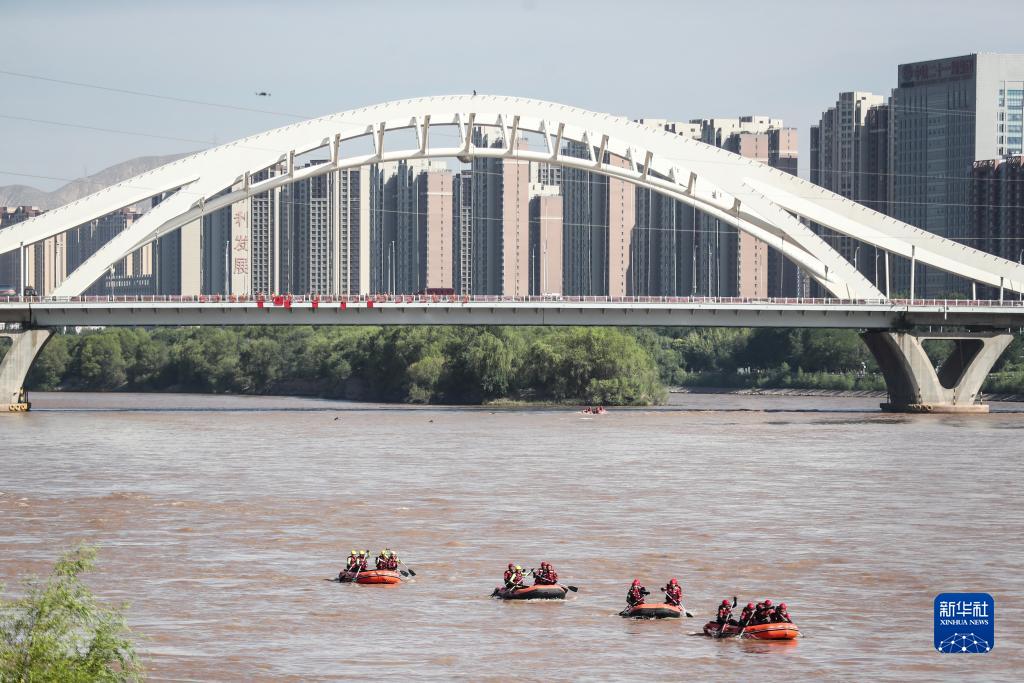 8月14日,參演隊員在黃河蘭州段奧體中心附近水域開(kāi)展水域救援實(shí)戰化演練。