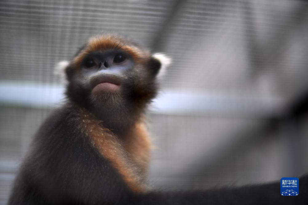 這是8月14日在梵凈山野生動(dòng)物救護中心拍攝的黔金絲猴。