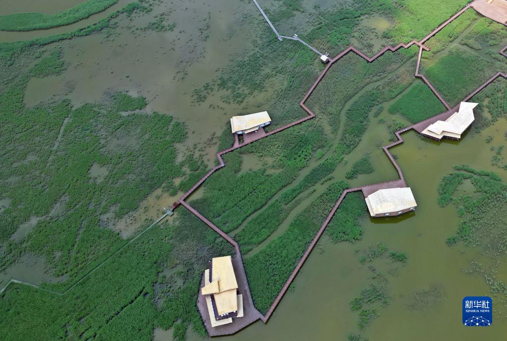 這是崇明東灘鳥(niǎo)類(lèi)國家級自然保護區一景(2023年6月14日攝,無(wú)人機照片)。