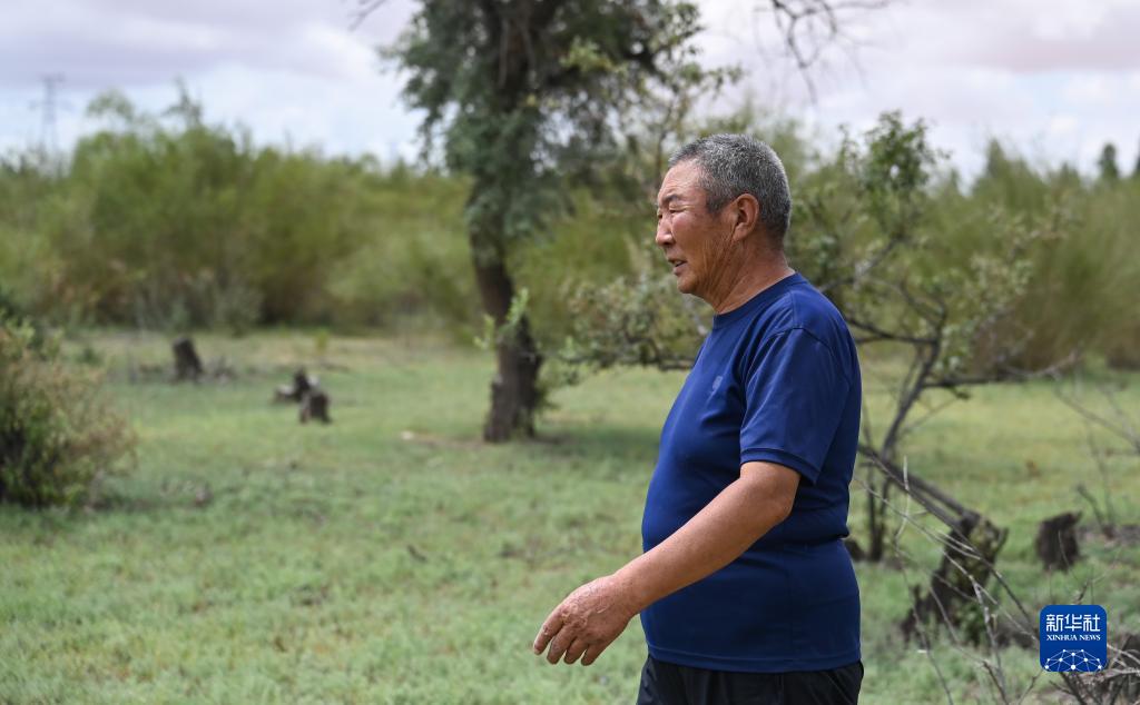 7月21日,內蒙古杭錦旗道圖嘎查原支部書(shū)記陳寧布在自家草場(chǎng)上行走。
