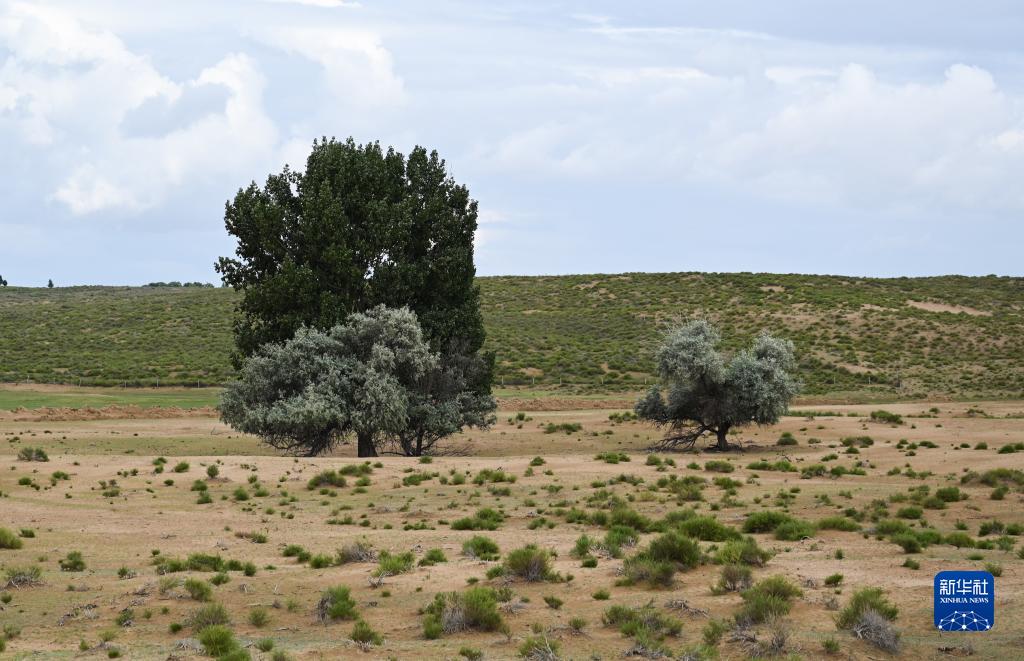 這是7月21日在內蒙古杭錦旗沙日召嘎查牧民白音道爾計家的草場(chǎng)拍攝的樹(shù)木。