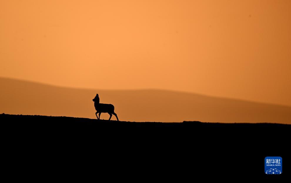 一只雌性藏羚羊在可可西里卓乃湖區域活動(dòng)(6月18日攝)。